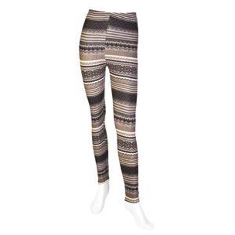 The design for these brushed leggings is done in brown, black, and white.  An elastic band ensures a snug fit.