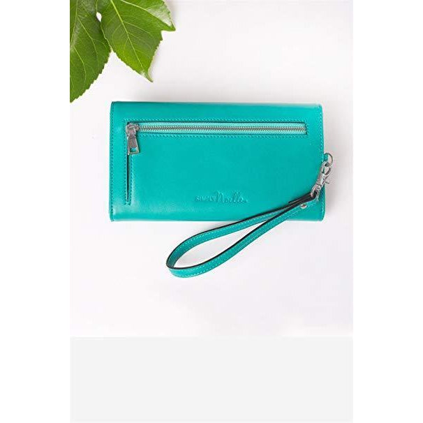 Regular price Save $-32.99This great foldover wallet has a zipper pocket on the back and can be used as a crossbody. It has a snap closure.